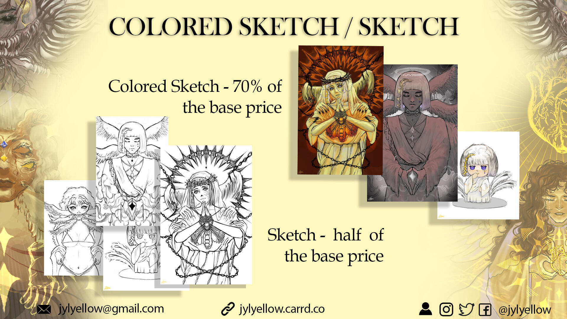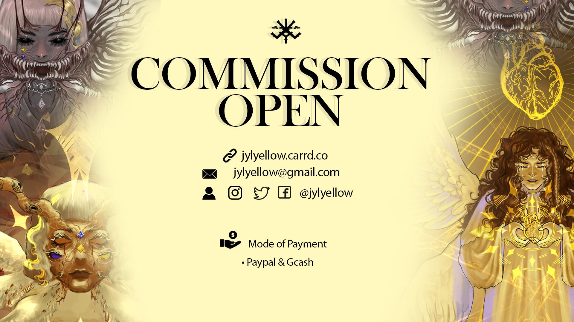 Hello, I am Yellow, an artist from the Philippines. I'm okay with any pronouns although I would prefer if you use he/they. I mainly draw divine imagery and body horror.📩: [email protected]