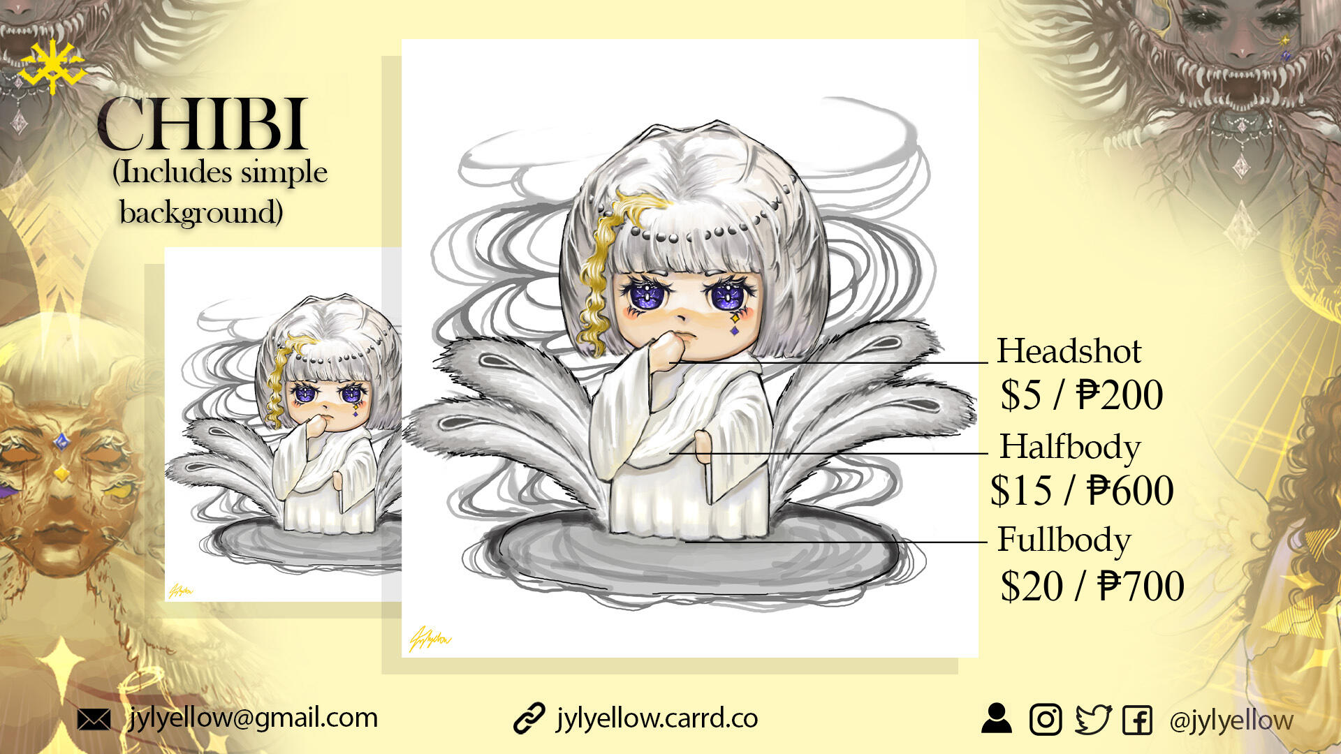 • Fullbody - $20/₱700Chibi sketch - Half the price listed.
